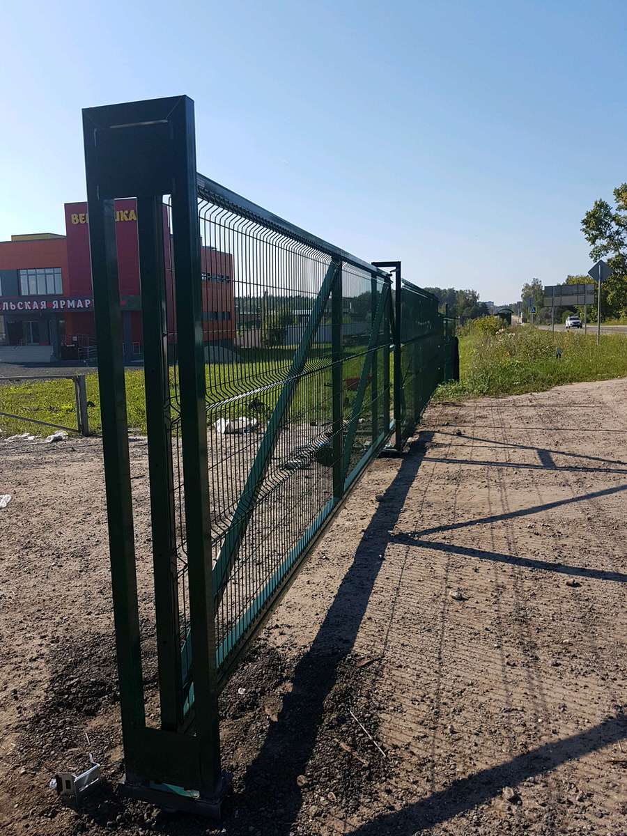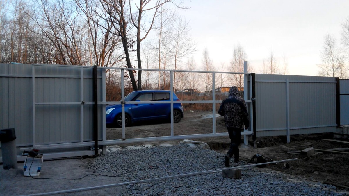 Современный тип ворот рельсового, консольного или подвесного типа. Применяем сваи диаметром 76 или 89 мм.